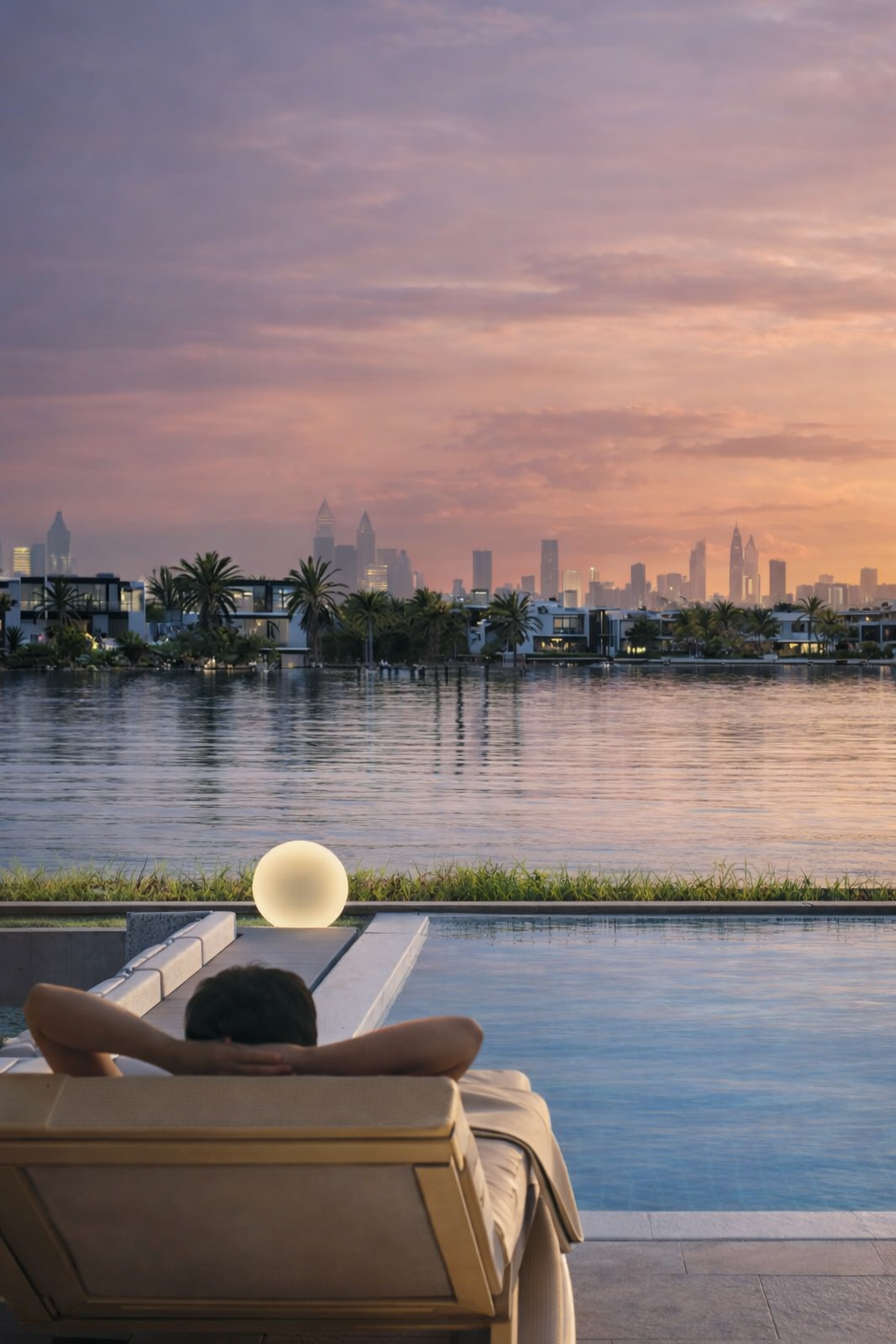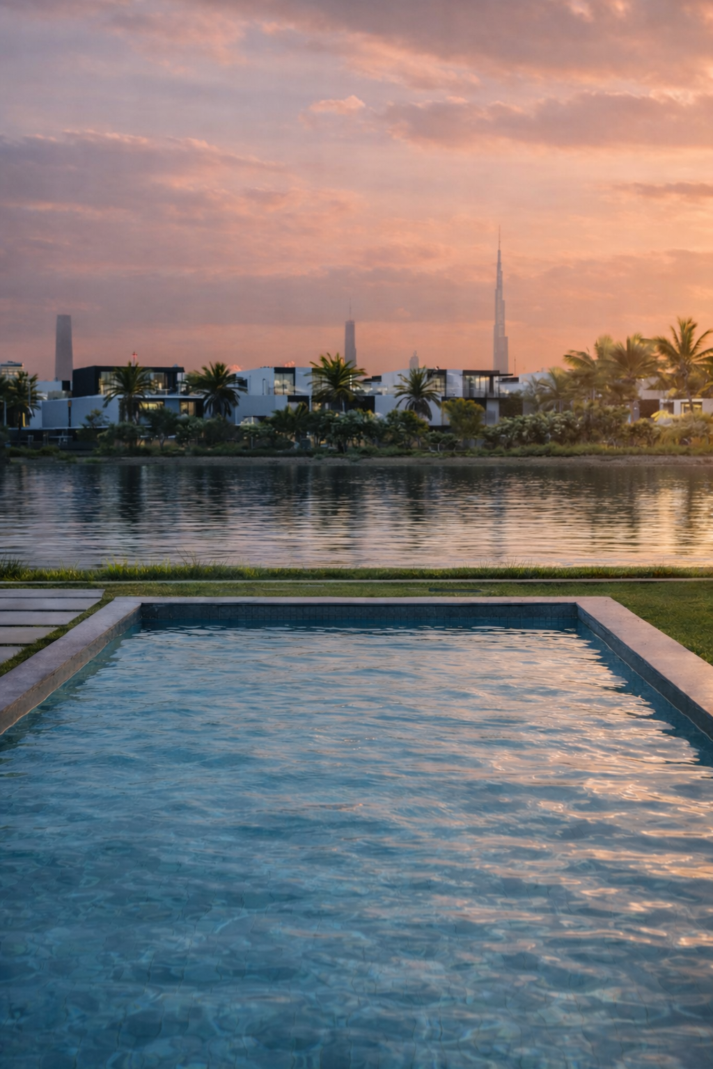 Exclusive lagoon-facing villas with panoramic skyline views and architectural precision.